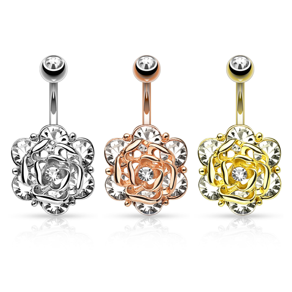 Név: Köldök piercing csillogó köves rózsával, több színben