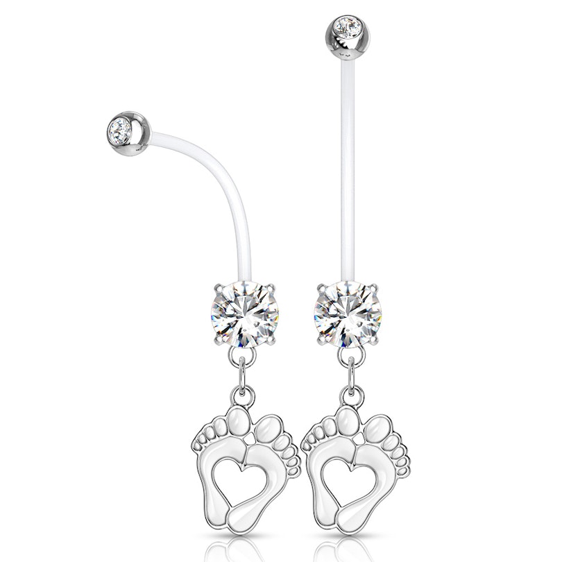 Köldök piercing kismamáknak, kis lábas, szívecskés dísszel