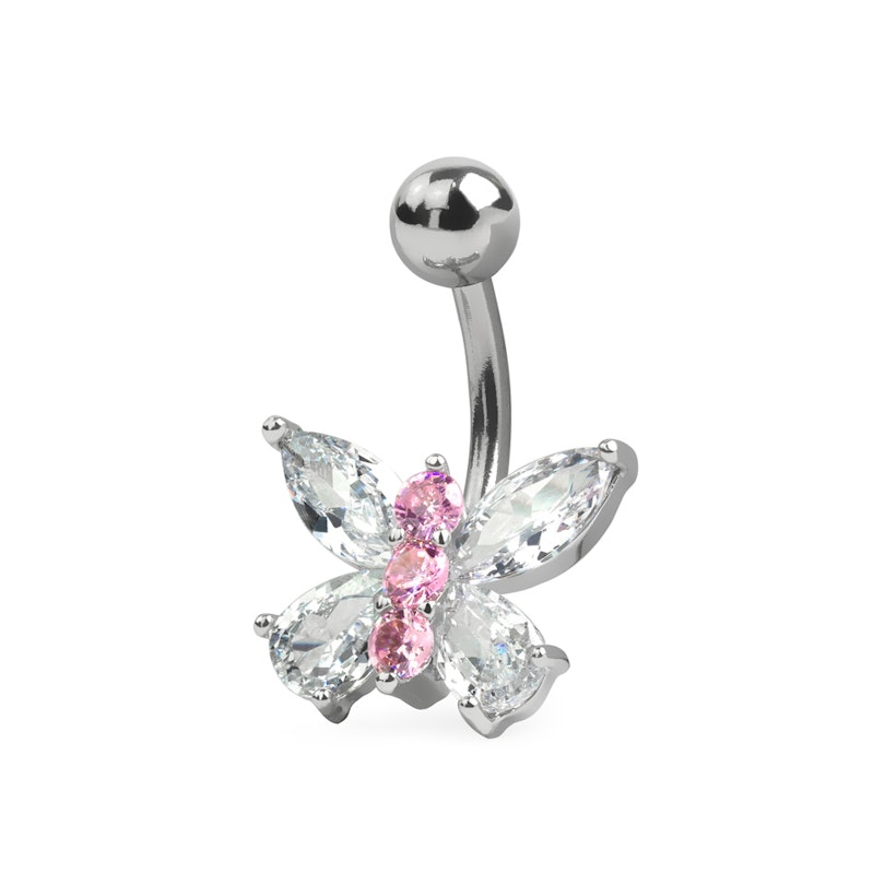Nem vitás, hogy a pillangók csodálatos teremtmények, és ékszer formába öntve még különlegesebb hatást keltenek! Ezen a nem mindennapi köldök piercingen kövekből kirakva jelenik meg egy ragyogó kis lepke.