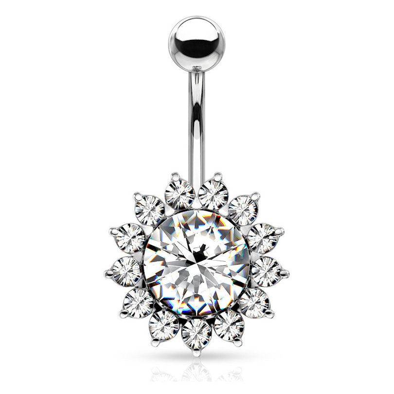 Köldök piercing, kristály virággal