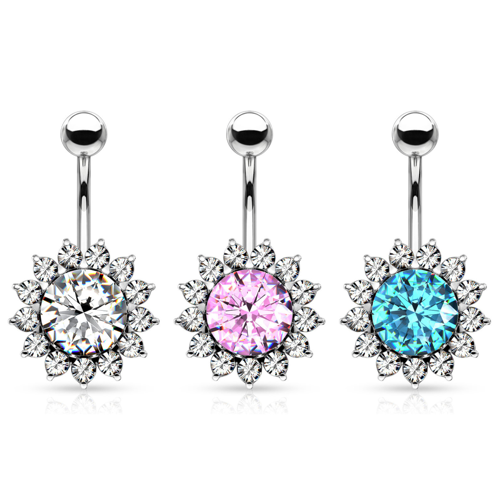 Köldök piercing, kristály virággal