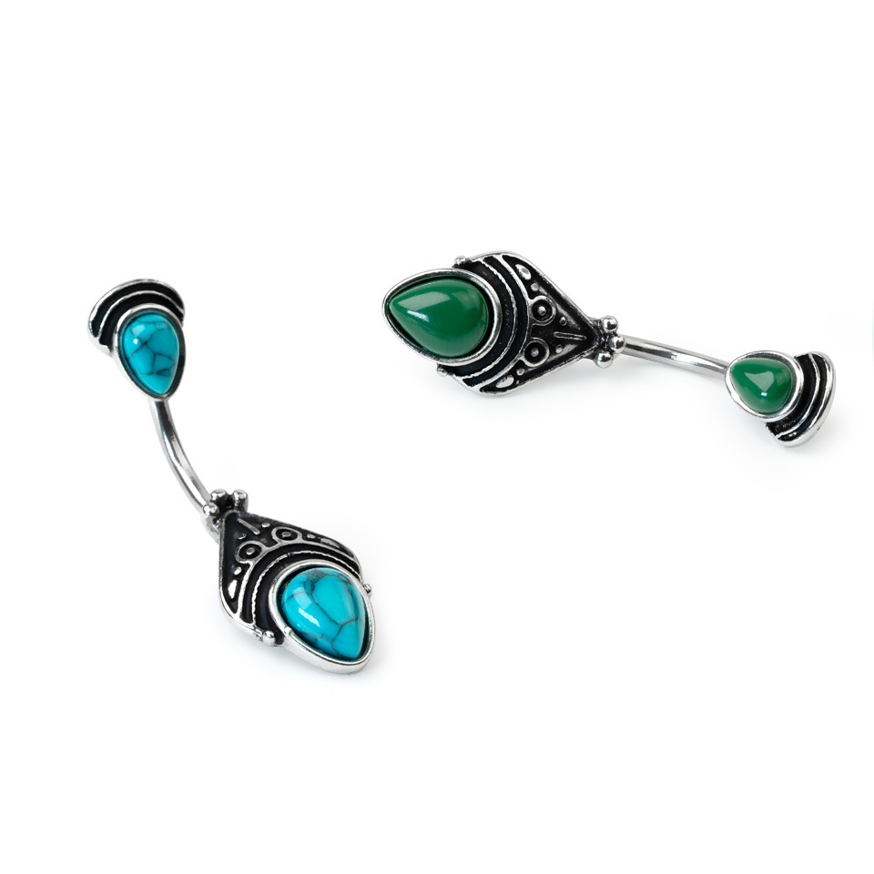 Köldök piercing különleges antikolt dizájnnal, ovális kövekkel