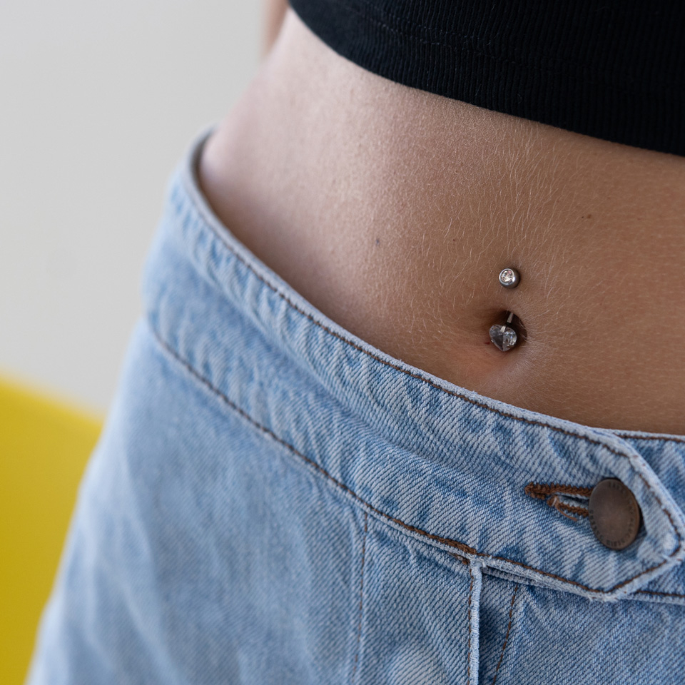 Borzasztóan aranyos, nőies, csillogó modellre találtál. Biztosan az egyik kedvenced lesz ez a csiszolt köves köldök piercing.