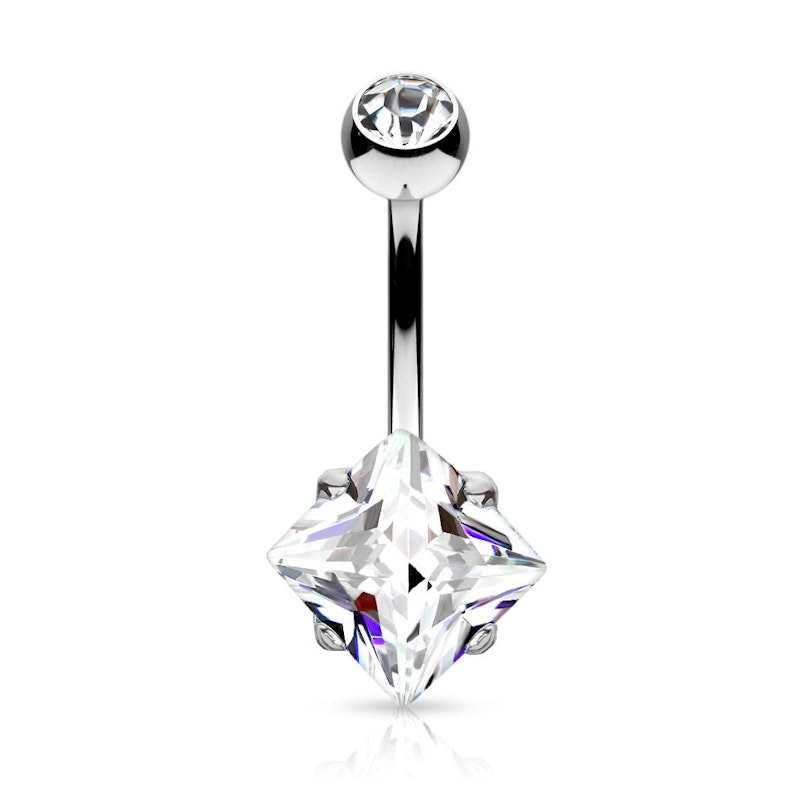 Ha szereted az olyan köldök piercingeket amik nem vesznek el és kicsit figyelemfelkeltőbbek, akkor ez a csodás modell rád vár! Igaz hogy egy letisztult, egyszerű formájú ékszerről van szó, ami nincs tele lógó díszekkel, az alsó négyszögletes díszítő kő által mégis exklúzív hatást kelt.