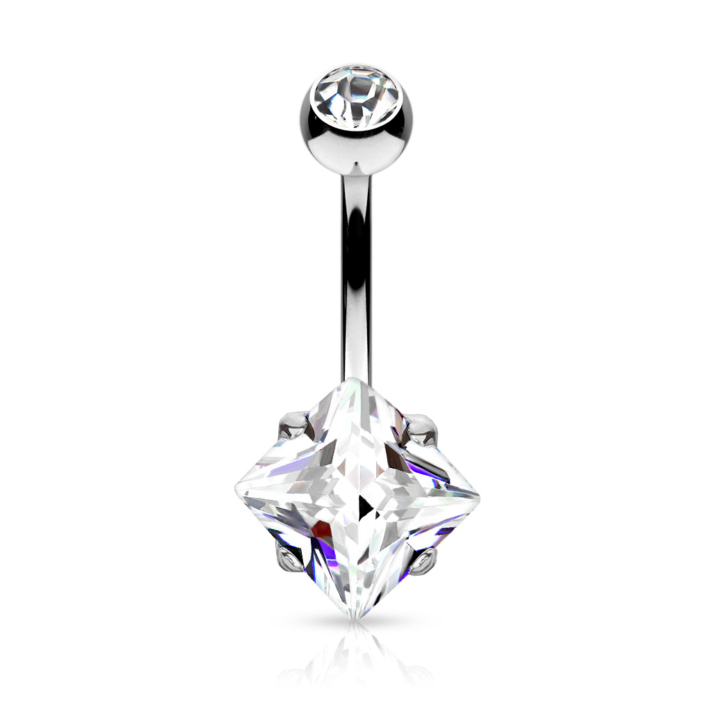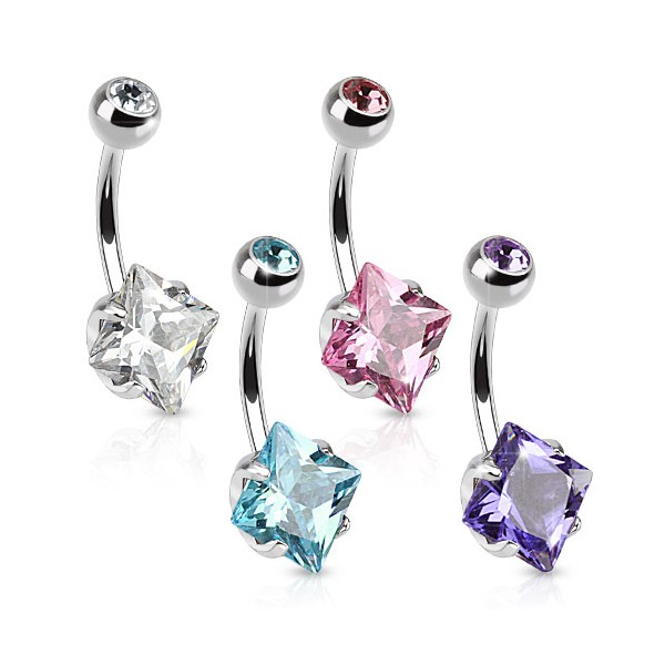 Köldök piercing, szögletes kő dísszel