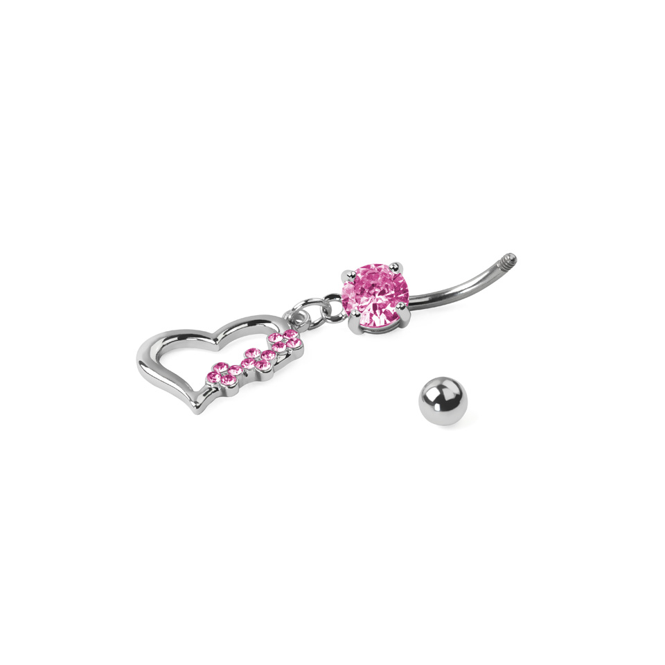 Köldökpiercing titániumból, szív medállal, kő díszítéssel
