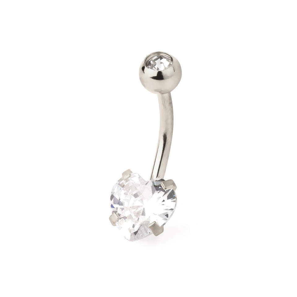 A szív forma mindig nagyon népszerű volt nem csak a piercingek hanem általában az ékszerek világában is. Most egy gyönyörű vágott formában látható a fenti képeken - de nem ez az egyetlen ragyogó kő ami ezt a köldök piercinget díszíti.