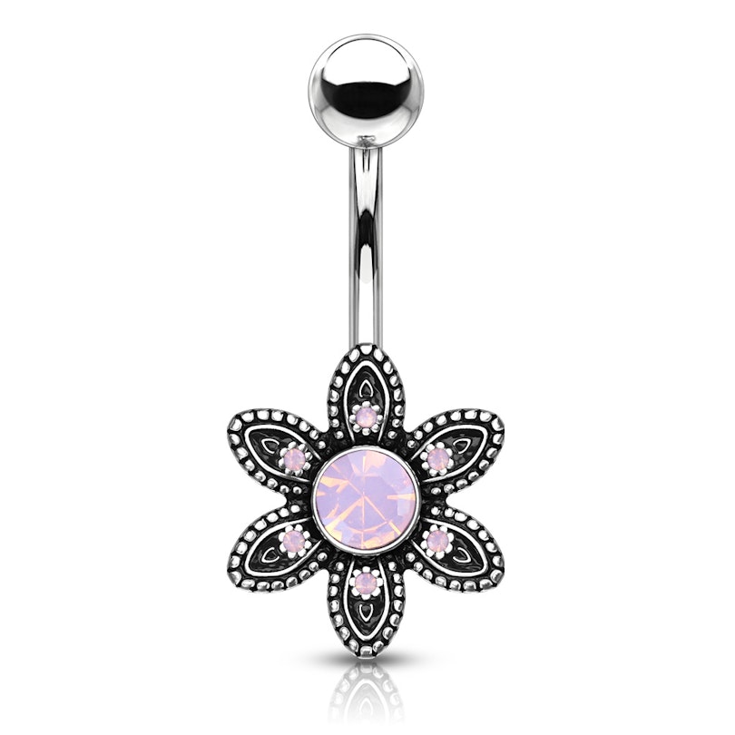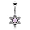 Köldök piercing virág dizájnnal, kerek opalit kővel