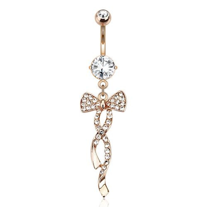 Név: Köldök piercing, vörös arany bevonattal, kövekkel és masni medállal