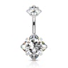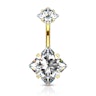 Olyan köves testékszereket keresel, amik túlragyogják még a valódi csillagokat is? A képen pont egy ilyet látsz, ezt a köldökpiercinget ugyanis nem egy, de rögtön kettő fantasztikusan csillogó négyszögletes kő díszíti.