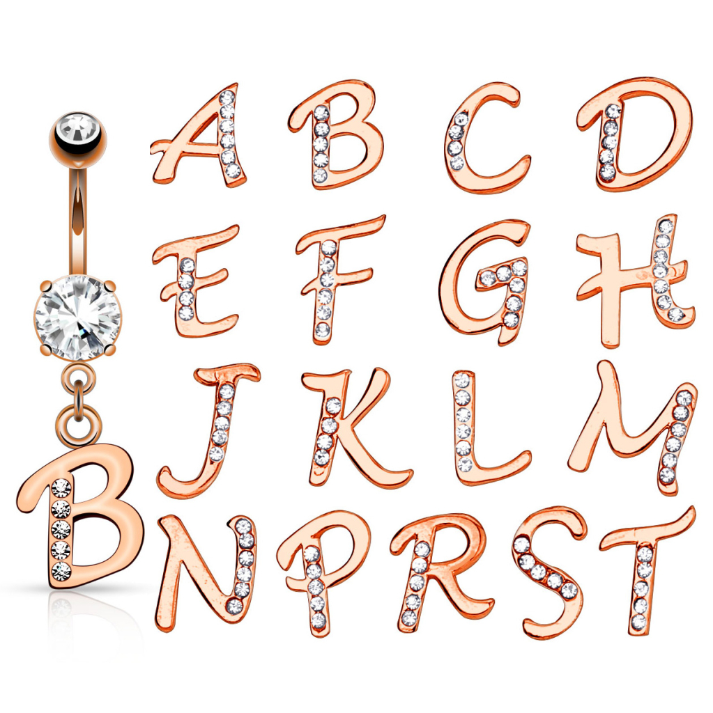 Fedezd fel ezt a csodás köldökpiercinget amit az angol ábécé bármelyik betűjével személyesebbé tehetsz. A betűkön apró cirkónia köves díszítés található egy sorban - ezzel még szebbé téve az ékszert.