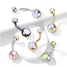 Név: Köldökpiercing dupla gyöngyházfényű kővel
