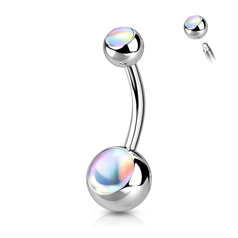 Olyan, mintha egy buborékot néznél, vagy egy olajfoltot a víz tükrén. A csillogó felület, ami mozgásra változtatja a színét, mindig lenyűgöző látvány. Pont ilyen ez a köldökékszer. Sajnos a fotó nem adja vissza, milyen hatást kelt élőben. De biztosítunk, hogy a köldöködben viselve csodás látványt nyújt majd.