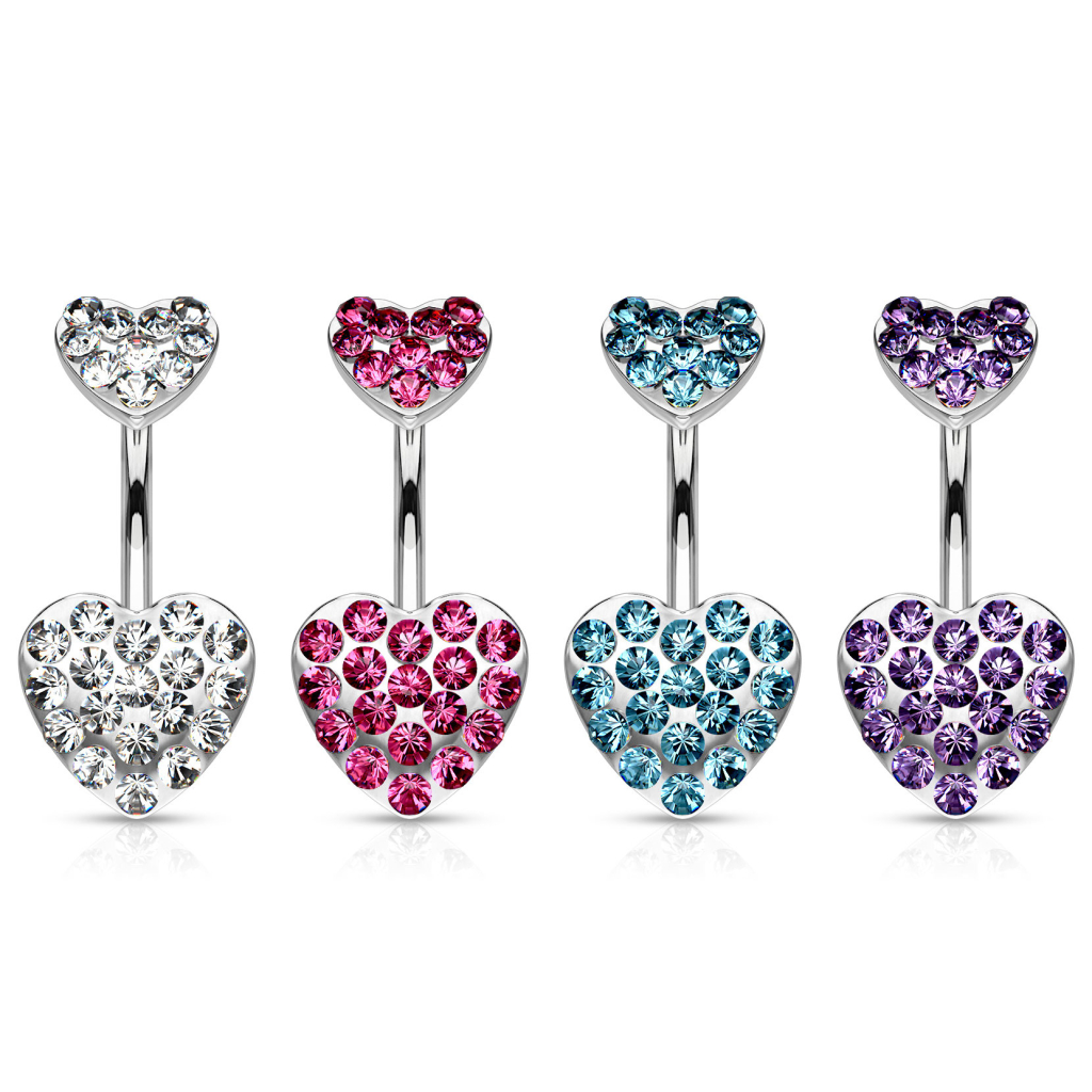 Köldökpiercing két kőberakásos szívvel