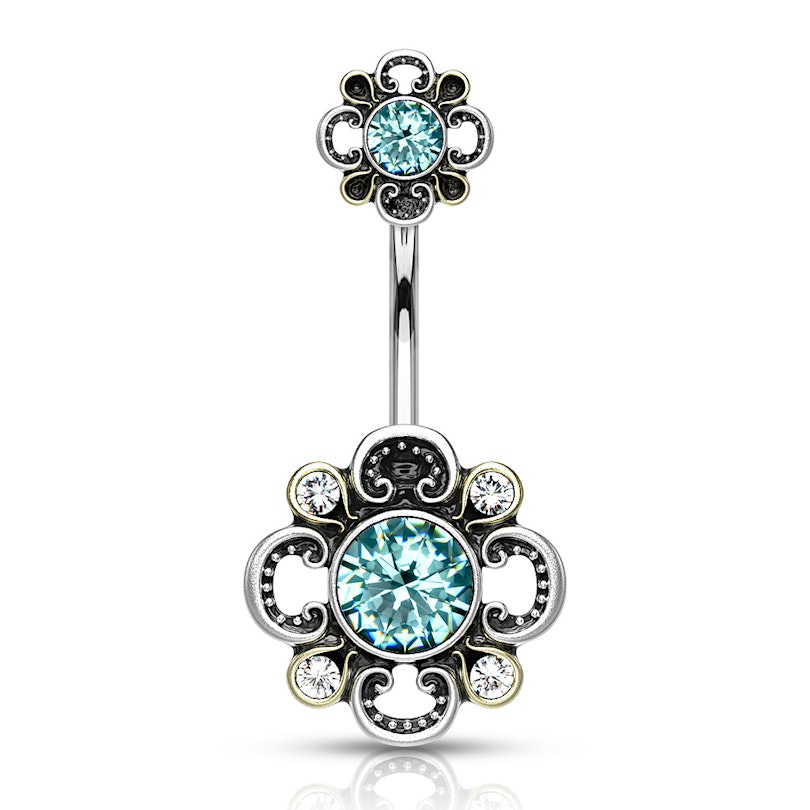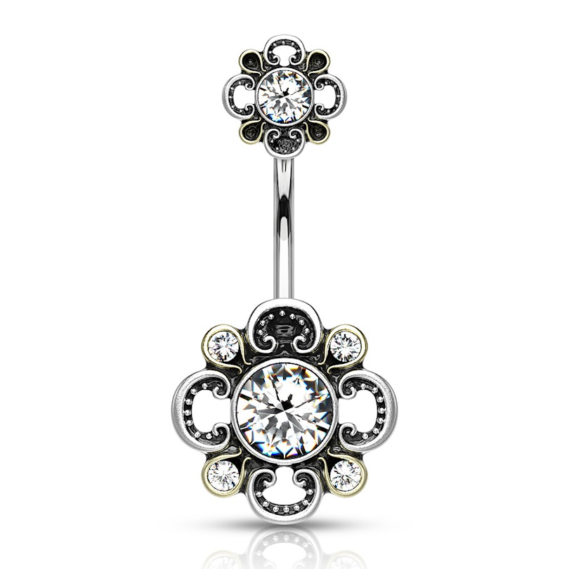 Köldökpiercing különleges köves virág díszítéssel