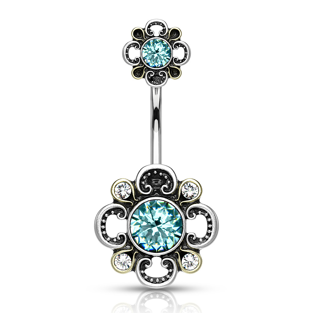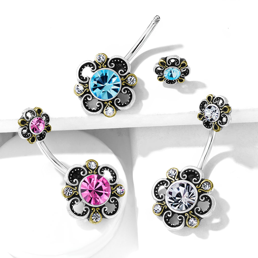 Név: Köldökpiercing különleges köves virág díszítéssel