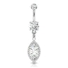 A marquise-t további apró kövek veszik körül. A köldökpiercing összes köve tisztított, beleértve a barbellen lévő felső és alsó golyókat is.