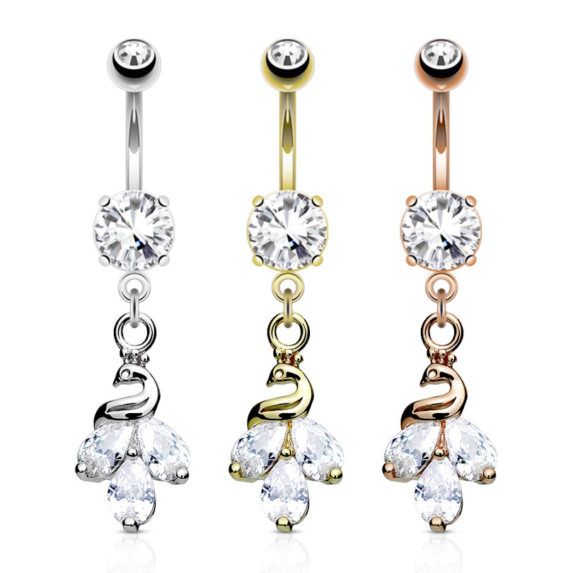 Név: Köldökpiercing orvosi acélból, páva medállal