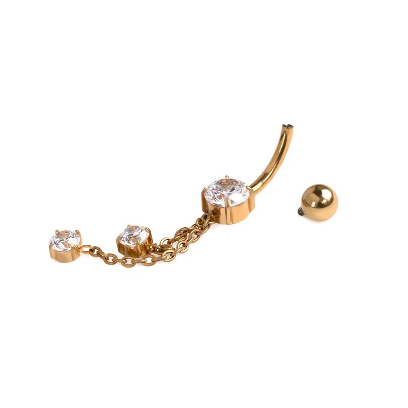 Köldökpiercing titánból láncokkal és kövekkel