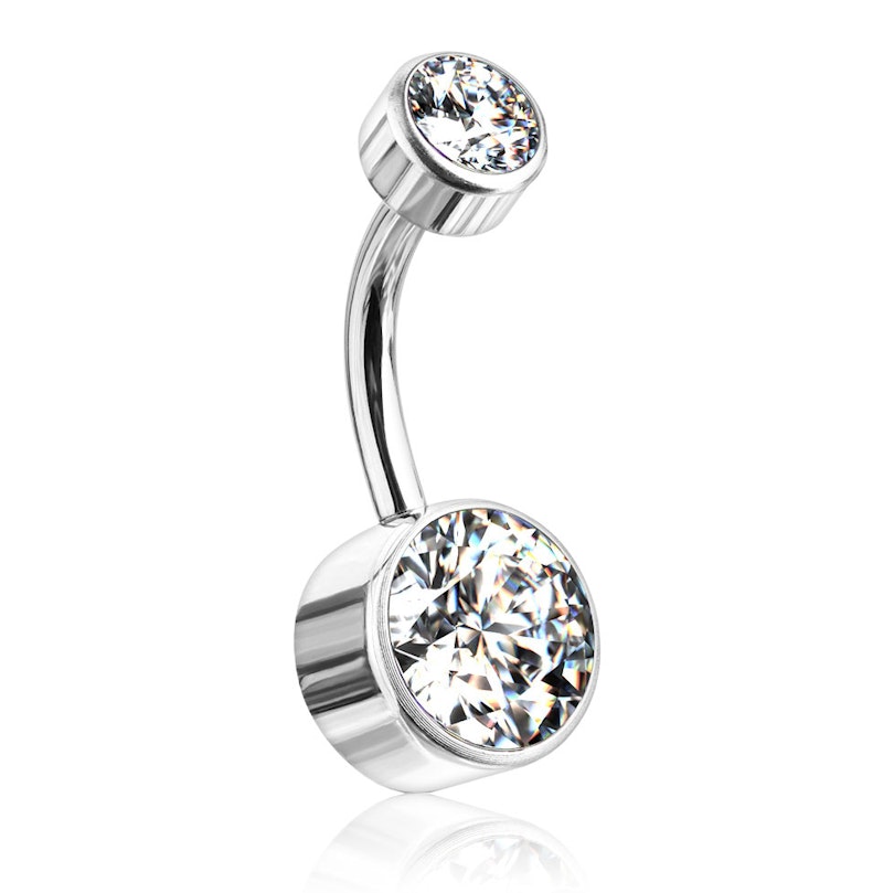 Ennek a köldökpiercingnek a golyója hátul lapos, ami lehetővé teszi, hogy jobban illeszkedjen a bőrhöz. Ezért egy kicsit kisebbnek tűnhet, mint amilyen valójában.
