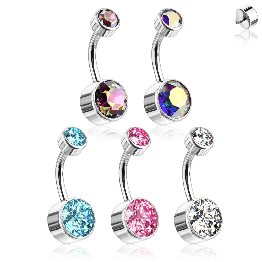 A köldökpiercing kövei különböző színben kaphatóak, igy könnyen kiválaszthatod a személyiségednek és ruhatáradnak megfelelőt.