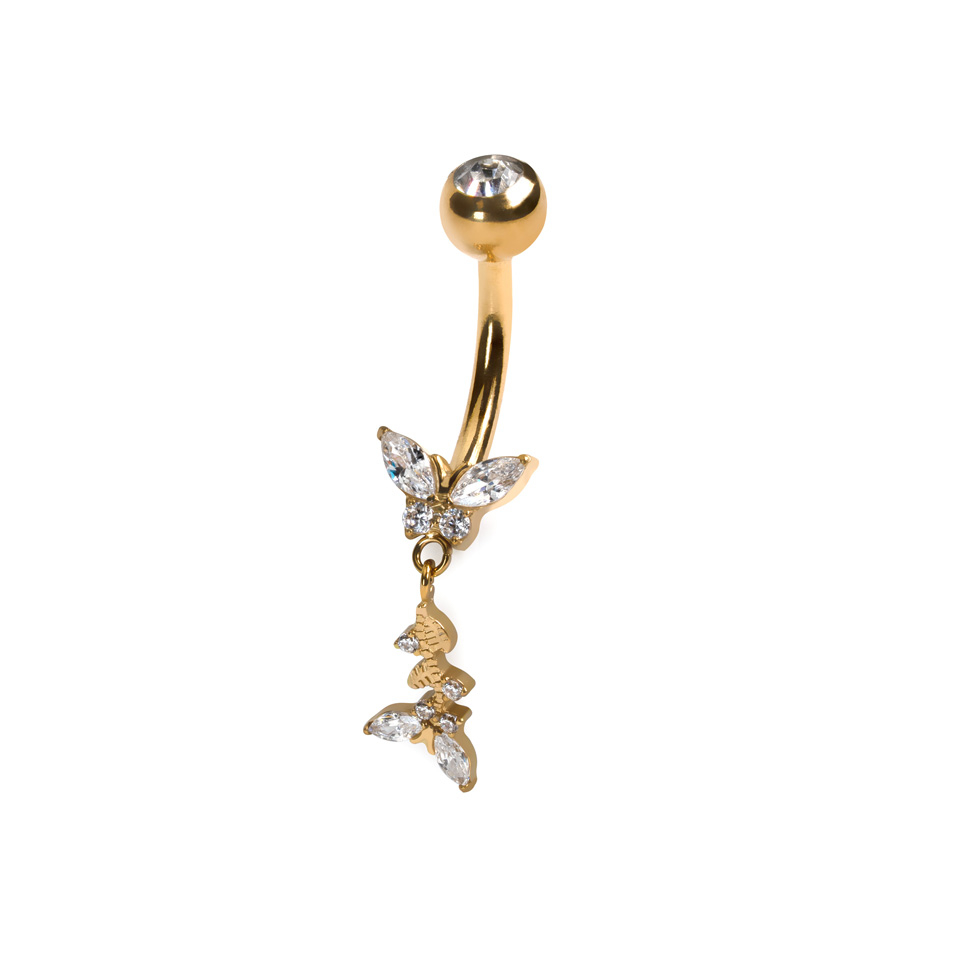 Köldökpiercing titánból pillangókkal