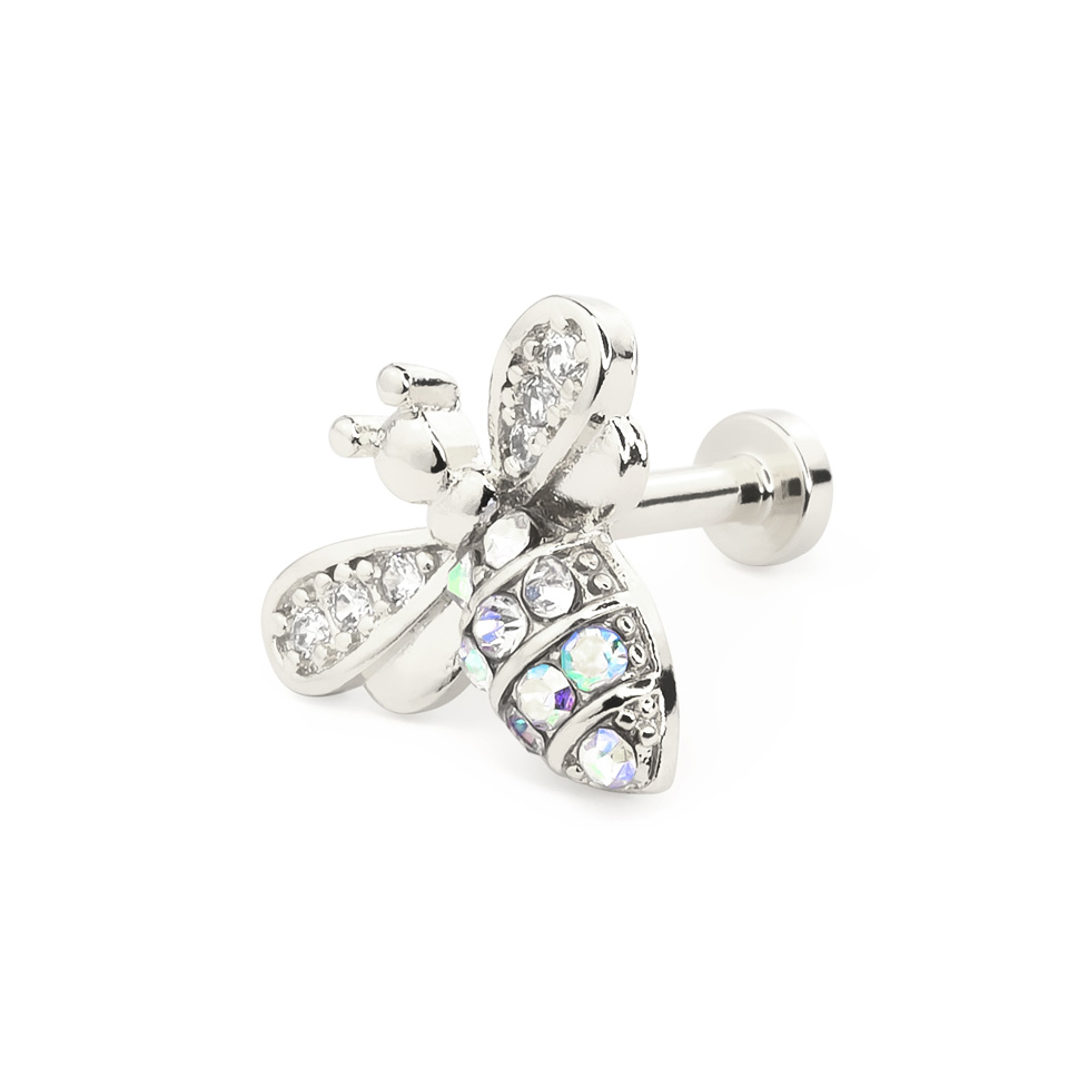 Labret belső menettel, csillogó köves méhecskével