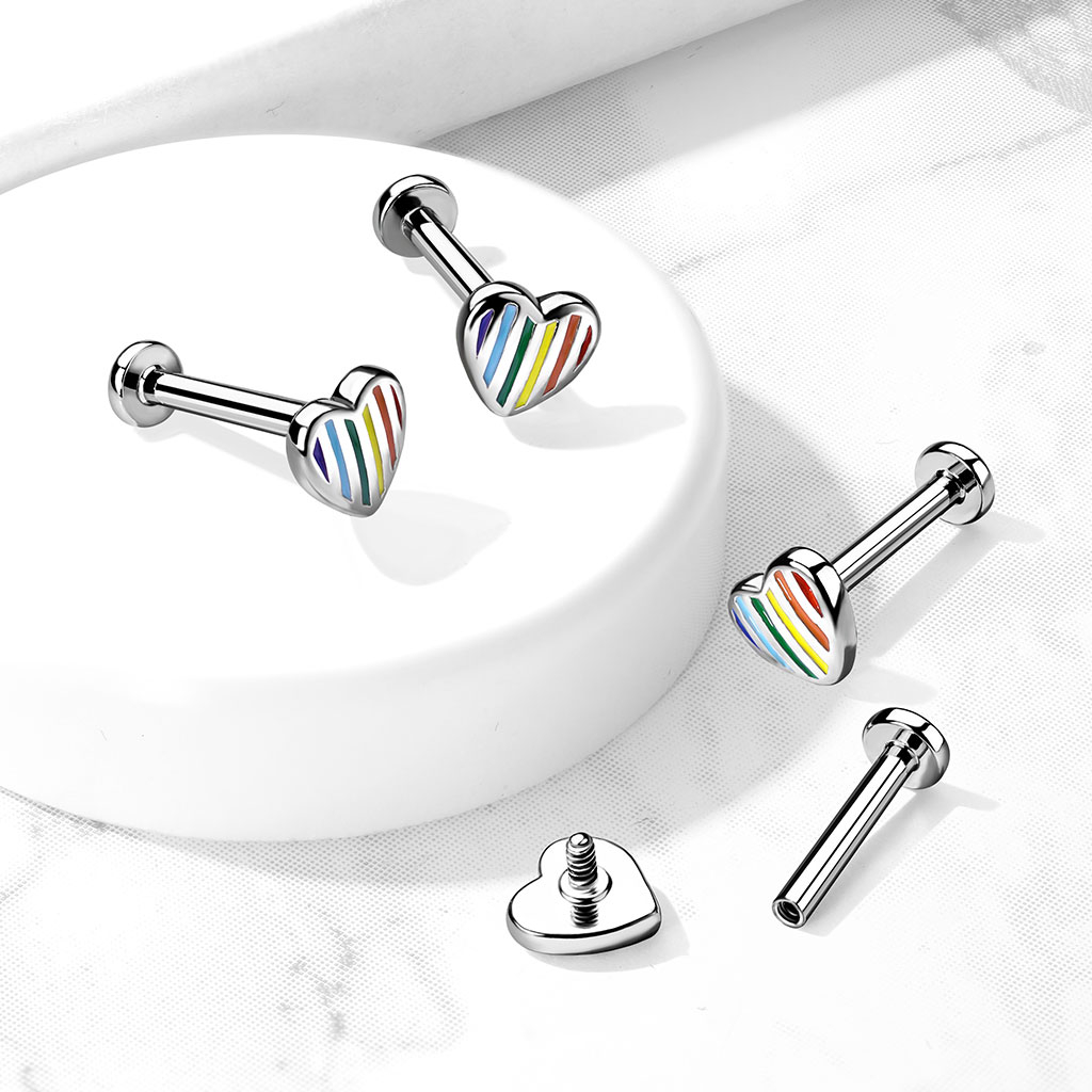 Labret belső menettel, szivárványszínű szívvel
