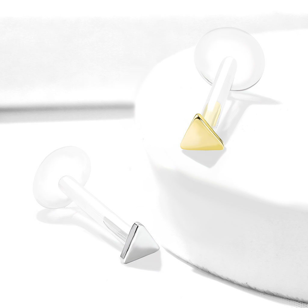 Név: Labret 14 karátos aranyból, bioplaszt szárral háromszöges fejjel