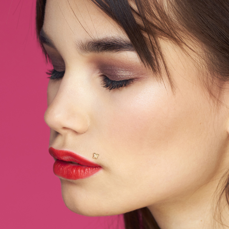 Labret, ptfe szárral, 14 karátos arany pillangó zárófejjel