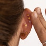 Elhelyezkedés: Tragus, Fülcimpa, Helix, Conch