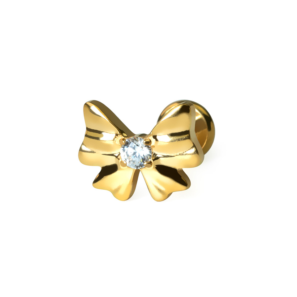Ez az aranyos labret egy masnival van díszítve, melynek közepén egy elegáns cirkónia kő ragyog. A masni 8 mm széles, míg a közepén elhelyezkedő kő 2 mm átmérőjű.