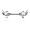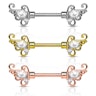 A képen látható ékszert kifejezetten mellbimbó piercingnek tervezték. A szár hossza 12 mm, és mindkét végét kövekkel kirakott, gyönyörű csavart filigrán minta díszíti. Az ívelt végei miatt úgy tűnik, mintha a motívumok a szár részét képeznék.
