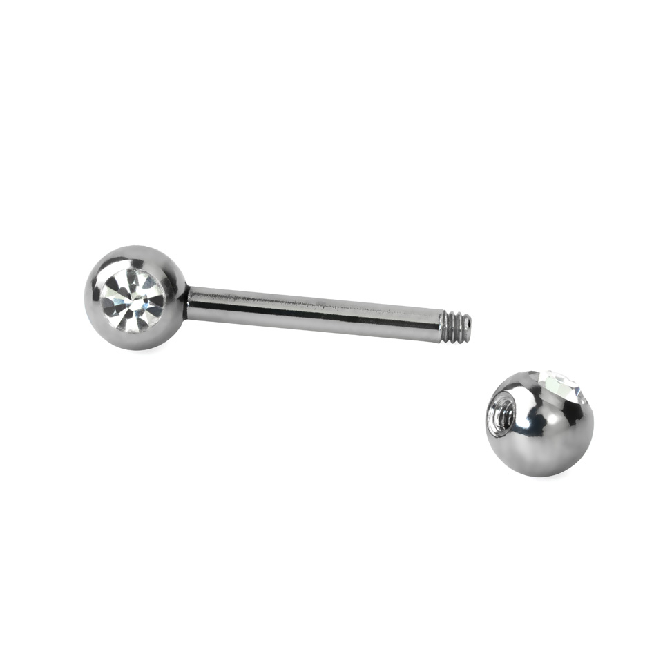 Ez az egyszerű tervezésű mellbimbó piercing egy szárból és két golyóból áll, a golyók a szár két végén helyezkednek el, amelyeket egy-egy kő díszít, és más ékszerekkel ellentétben ezek előre néznek, így olyan hatást keltenek, mintha a piercingen két szem lenne. Ez a modell mellbimbó piercingnek tökéletes választás.