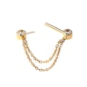 Ez a mellbimbó barbell implantátum minőségű titánból készült, a golyók pedig lünettába foglalt cirkónia kövekkel vannak díszítve. Ez az egyedi darab két láncot is kapott, melyek a mellbimbó alá lógnak. A láncok a golyókhoz finom hurkokkal vannak rögzítve.