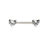 Ennek a titán mellbimbó barbellnek mindkét végén cuki szív alakú kő található. Átlátszó, piros és rózsaszín cirkónia köves változatban érhető el. Ez a barbell push-in zárral rendelkezik, így nagyon könnyű behelyezni és zárni. Különböző méretek közül lehet választani.