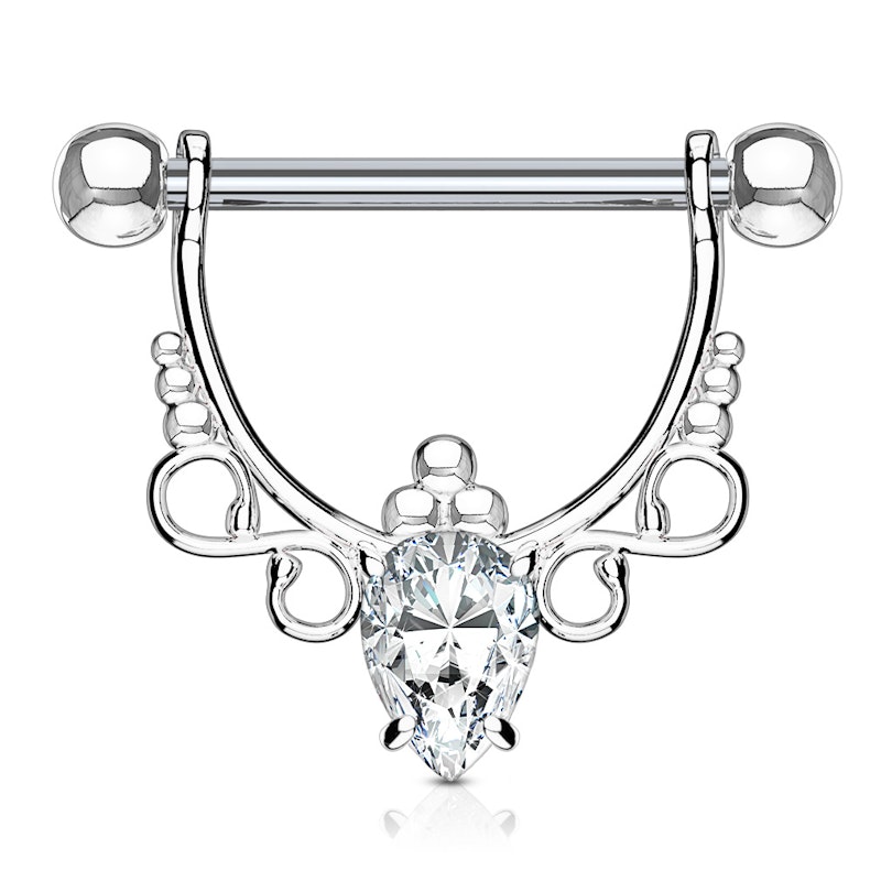 Név: Mellbimbópajzs filigrán dizájnnal és körte alakú kővel