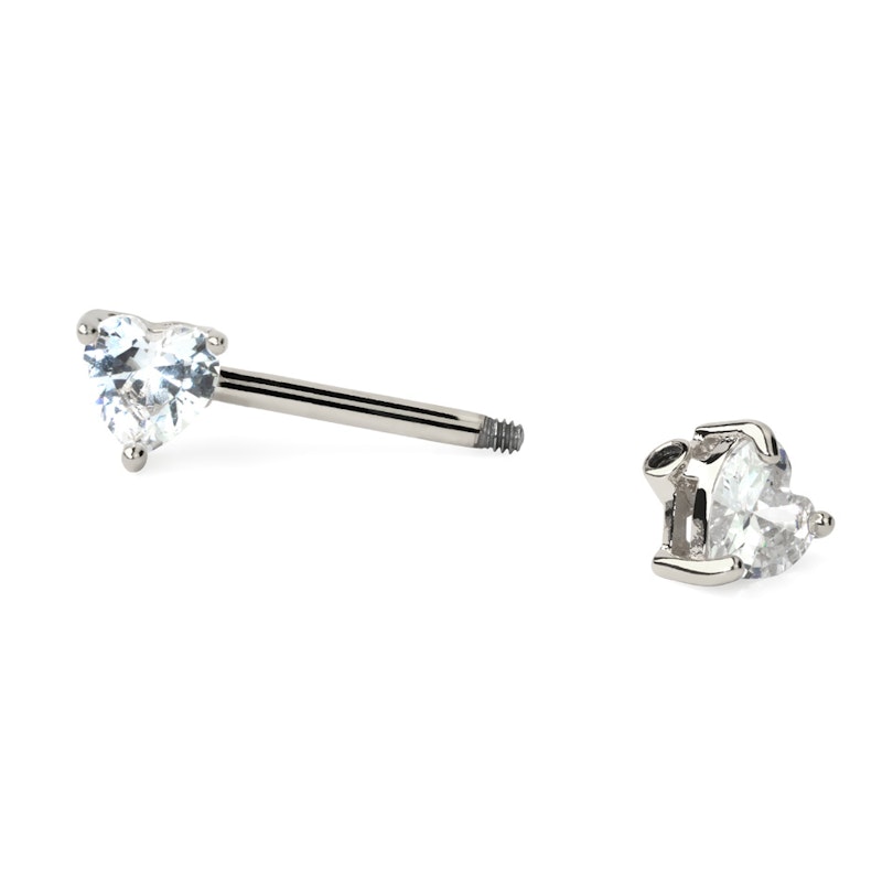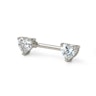 A fenti képen egy bámulatos mellpiercinget látsz. A klasszikus egyenes orvosiacél-szár végein egy-egy csodálatosan csillogó, karmos foglalatban ülő szív formájú kő található.