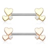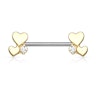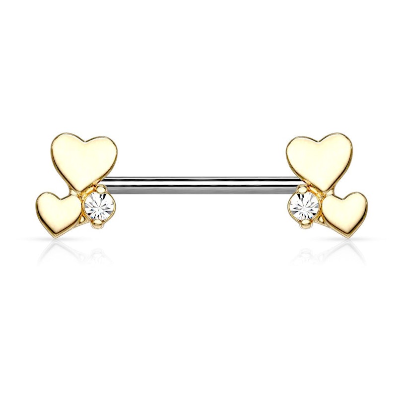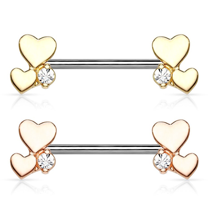 Ennek a mellbimbó piercingnek mindkét oldalát két apró szív és egy kő díszíti, amelyek a szár két oldalán kaptak helyet. A szár orvosi acélból készült, a hosszúsága 14 mm, a vastagsága 1.6 mm. Ez a méret a legtöbb embernek megfelelő.