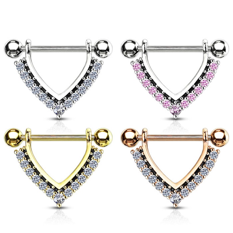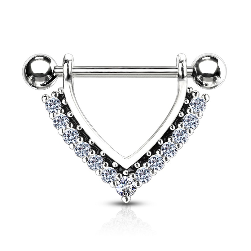 Mellpiercing V alakú köves díszítéssel