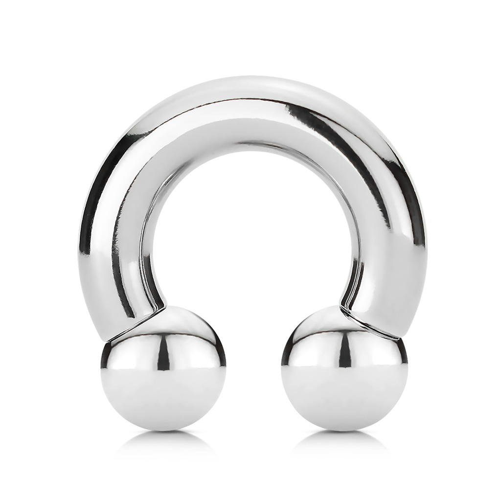 Ezt a patkó alakú piercinget nem a hagyományos méretű, hanem az 1.6 mm-nél nagyobb átmérőjű lyukakhoz tervezték.