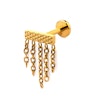 Ennek a labretnek a négyzetes oldala pettyezett mintájú, ami érdekes, textúrált megjelenést kölcsönöz. A négyzetről 5 apró, különböző hosszúságú lánc lóg, közűlük a középső a hosszabb, így ék alakú az összhatás.