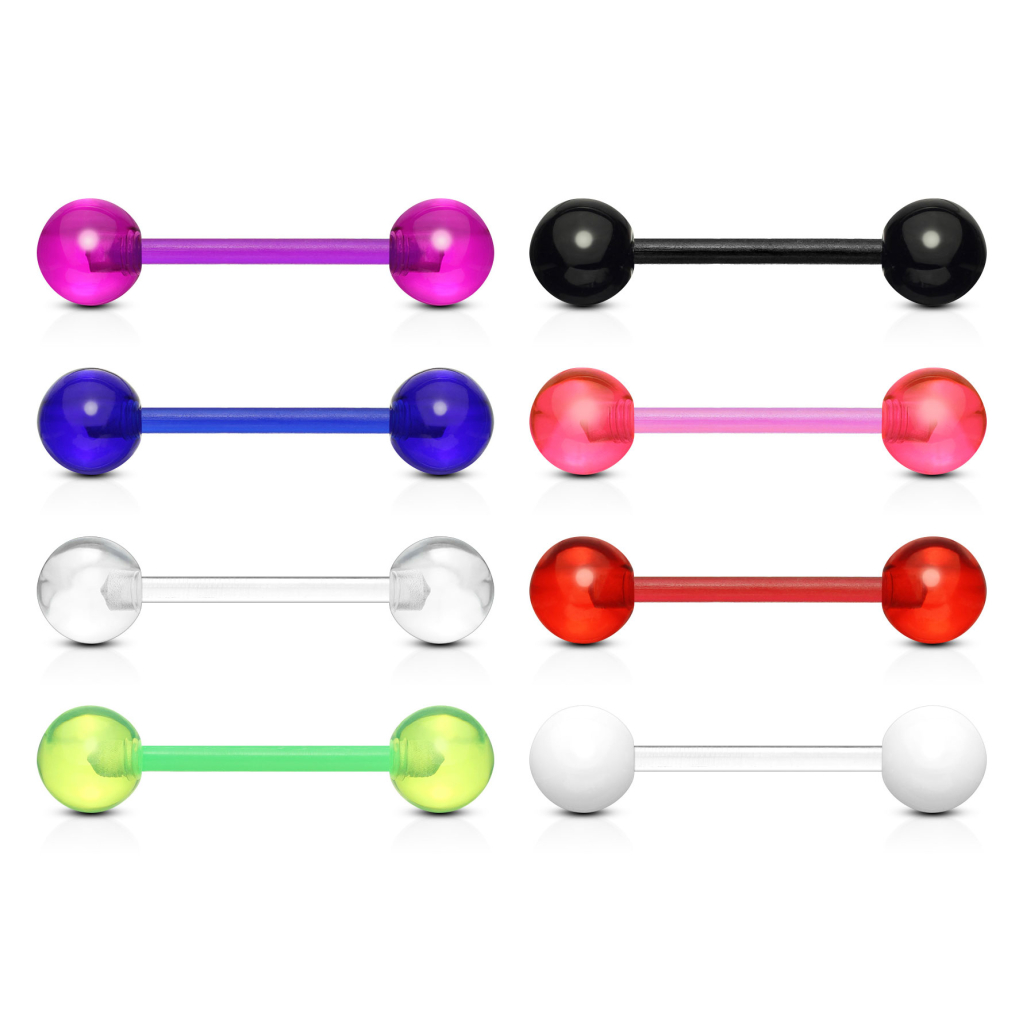 Végre itt a lehetőség, hogy egyszerre 8 különböző szinű nyelvpiercing tulajdonosa legyél. Mindegyik ékszer PTFE-ből, vagyis teflonból készült, ami egy nagyon puha és kényelmes anyag, igy tökéletes nyelvpiercingnek. A golyók akrilból vannak, ami kiméletes a fogakhoz és az inyhez. Mindkét anyag 100%-ban nikkel mentes, igy allergiás reakciótól sem kell tartanod.