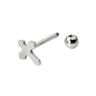 Az ékszer teteje kereszt alakú, és nem csavarozható le. Csak az alsó, 5 mm-es golyót lehet levenni. A kereszt 2,5 mm vastag, 10 mm széles és 12 mm hosszú.