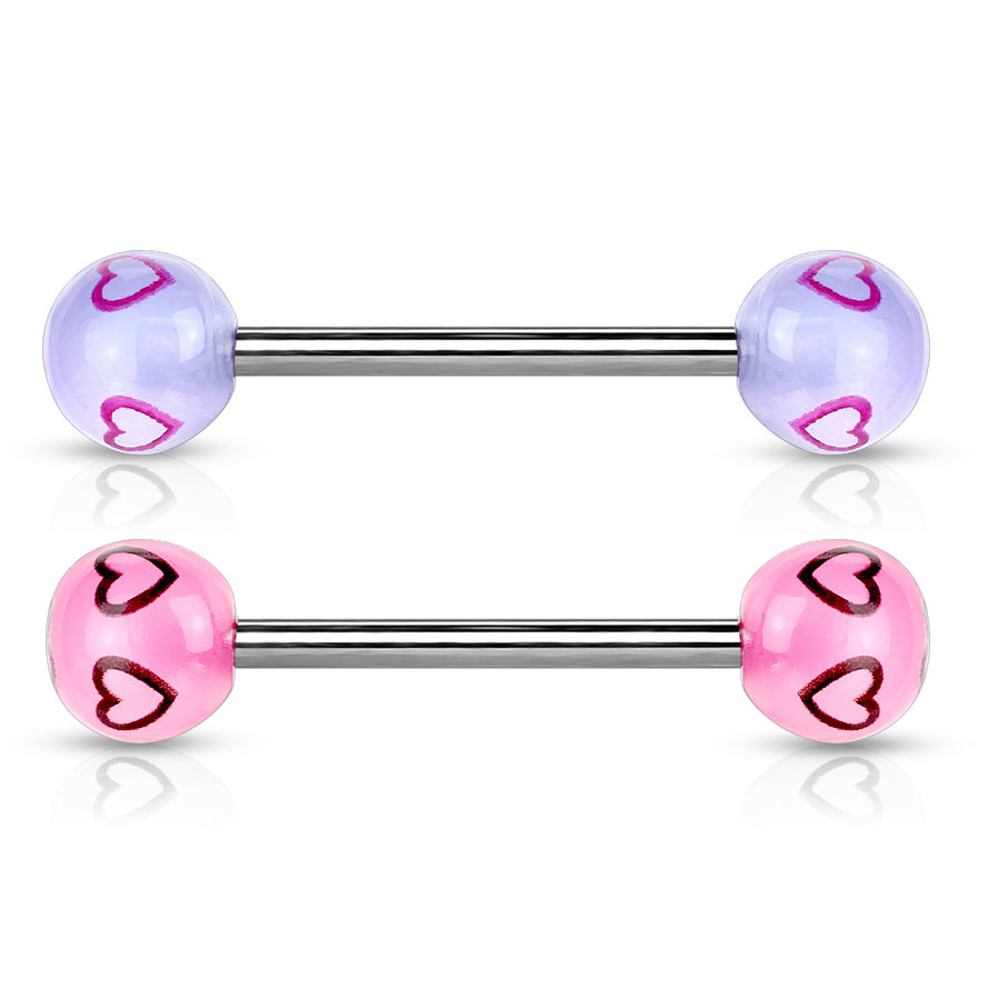 Ez a nyelvpiercing orvosi acélból készült mindkét végén egy-egy akril golyóval. Az akril megvédei a fogaidat, amennyiben ütődés ér, így kiváló anyag nyelvpiercingek készítésére.