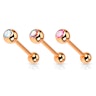 Nyelv piercing vörös arany bevonattal, csillogó kővel