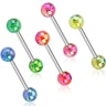Ez a csodás modell öt színben érhető el. A gömbök akrilból készülnek, a rúd anyagát tekintve pedig masszív orvosi acél, így egy rendkívül biztonságos modellről beszélhetünk. Mivel az orvosi acélból nem szivárog nikkel, nem okoz kárt a szervezetedben. Továbbá, az akril egy viszonylag puha anyag, éppen ezért megóvja a fogakat abban az esetben, ha neki ütődik az ékszer.