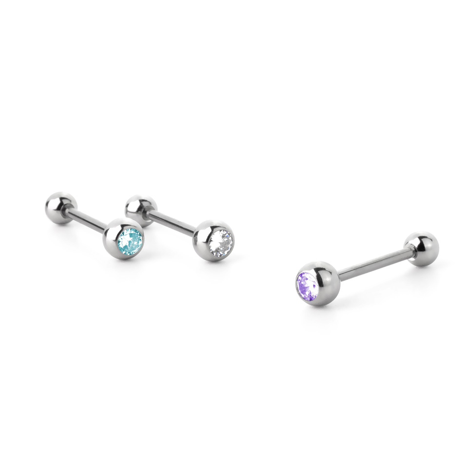 Nyelvpiercing orvosi acélból színes kövekkel díszítve