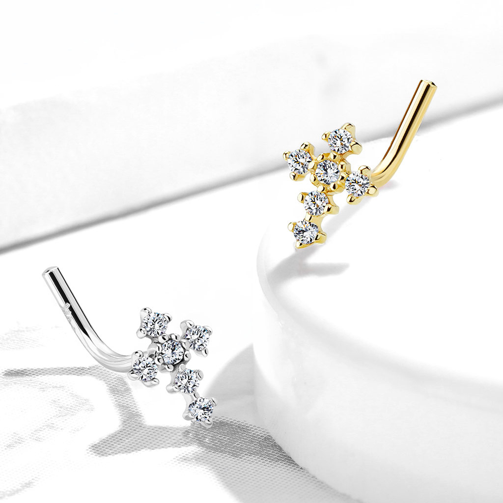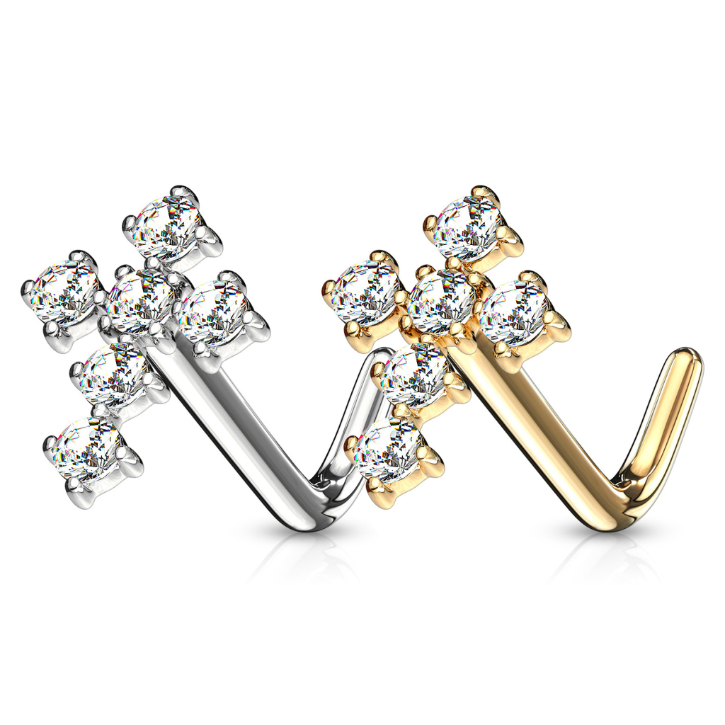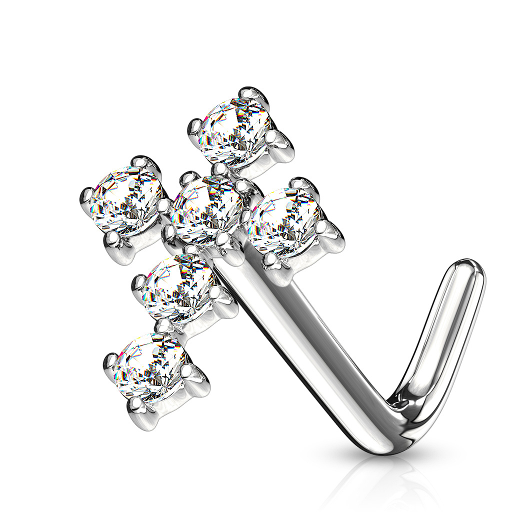 Az ékszer a végén hajlított szárral rendelkezik, ami olyan mint egy 90° szögben hajlított kis kampó, Ez megakadályozza, hogy a piercing könnyedén kiessen orrodból, ugyanakkor a behelyezést is sokkal könnyebbé teszi.