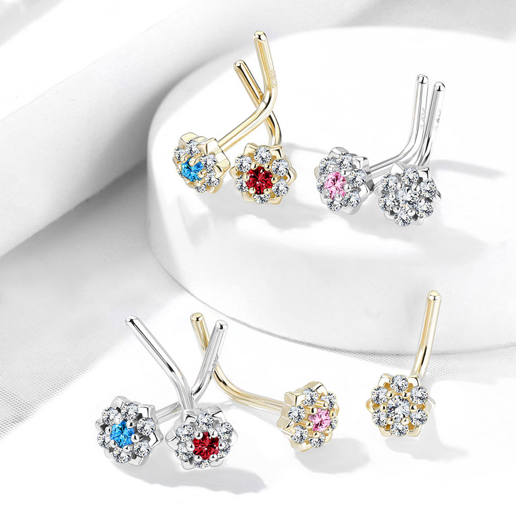 Név: Orr piercing 14 karátos aranyból, csillogó köves lótusz virág fejjel